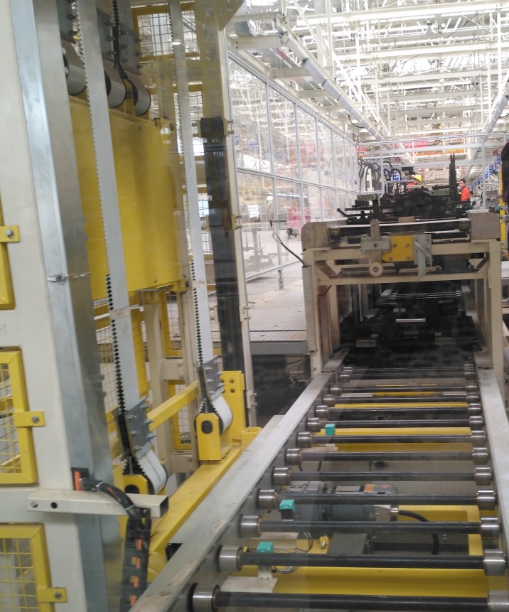 上下料轉(zhuǎn)運滑臺設(shè)計最高承載可達(dá)5000kg,可以靈活橫向移動,保證與EMS升降吊具上料及叉車下料對接。