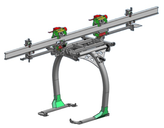 重型自行軌道輸送系統(tǒng)主要用于底盤合裝升降吊具及整車輸送,重載自行小車通過復(fù)合車組及平衡梁結(jié)構(gòu)使小車自身承載能力可達5噸,并且升降EMS吊具獲得了德國TüV 認證運行穩(wěn)定同時可以滿足60JPH產(chǎn)能工廠。